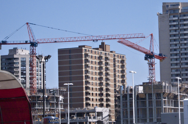 A photo essay from all around the city. Cranes wherever you look.