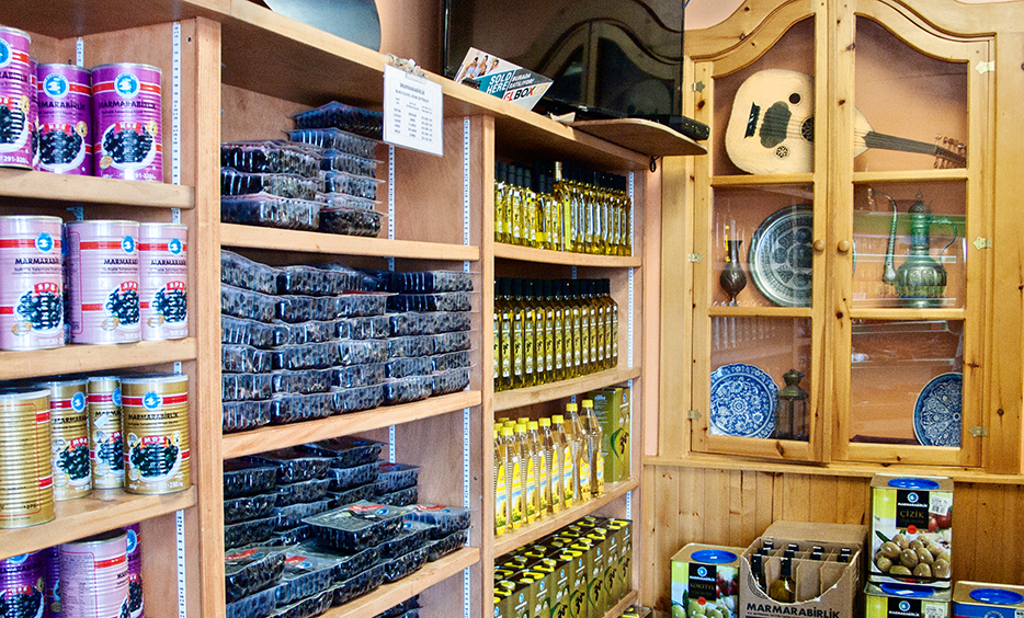 “I have only Turkish products, I don’t have others. Everything in my shop is from Turkey,” Mustafa says. “Except the cheese because the government has a quota on imported cheese.” The shop has more than a thousand items, including giftware.