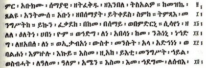 Christianity came to Ethiopia from Coptic missionaries from Egypt. Ge’ez is a Semitic language related to modern Amharic and the South Arabian languages. It is now extinct, but is still used as the liturgical language of the Ethiopic Orthodox Church. Here is the Lord’s Prayer in Ge’ez: