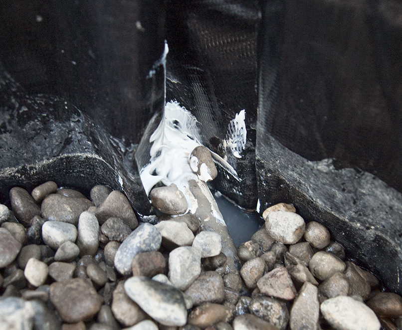 as possible into the pond liner for the overflow tube to pass through it, and then sealed the tube and liner joint with bathtub caulking. About half a tube of caulking, just to be sure there were no leaks. Can you tell that I am speaking from experience? That’s how I did the second box.