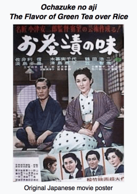 The title of the film The Flavor of Green Tea Over Rice (Ochazuke in Japanese) was meant to evoke “simple and popular tastes”. A nostalgic essence and ideal sought after by many of Ozu’s salarymen (white collar workers) as they navigated their complicated, adult, urban, post-war Japan existences.