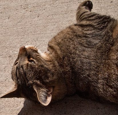 - A cat that distracts you by rolling over and begging for caresses;