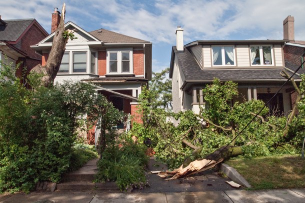 It damaged our front porch roof and pulled down the eavestrough. It pulled down the hydro wires and the hydro mast attached to our house, and we were without power until it was repaired the next evening.