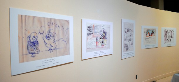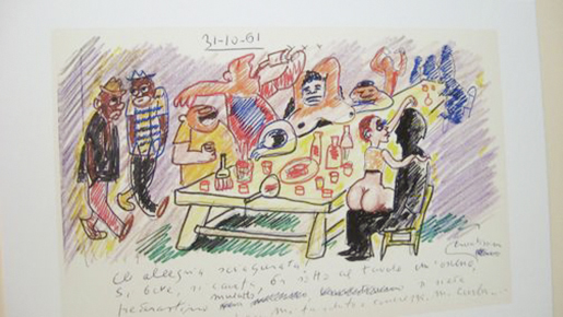 The Joseph D. Carrier Gallery at the Columbus Centre is currently hosting a unique opportunity to view “Food in Federico Fellini’s Drawings”. The exhibit provides a true feast for film, food and Fellini fanciers. On display are 20 prints of drawings by Fellini (at various stages of his life) that provide proof positive of the deep ties that food – preparing, serving, and eating – have had on Fellini and his creative juices. Some of the images are from Fellini’s famous Libro Dei Sogni (Book of Dreams) which is currently housed at the Rimini City Museum. Rimini is Fellini’s hometown and the inspiration for his masterwork Amarcord (“I remember”). The exhibit is on until Friday, January 11. Admission is free.