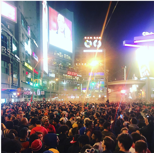 Yonge Dundas Square after the final game Published June 16, 2019 at 618 × 616 in On Being a Raptors Fan ← Previous by Emma Katz