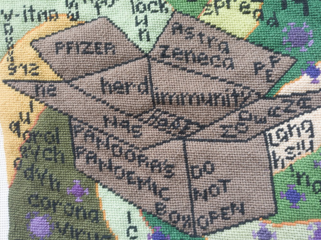 LT: And you have to go back and pull it out. Theo, you capture the spirit of our pandemic existence. You push and pull needles through the COVID-19 loneliness, isolation, and frustration we all feel. You need patience to do this work, something we all need for COVID-19.