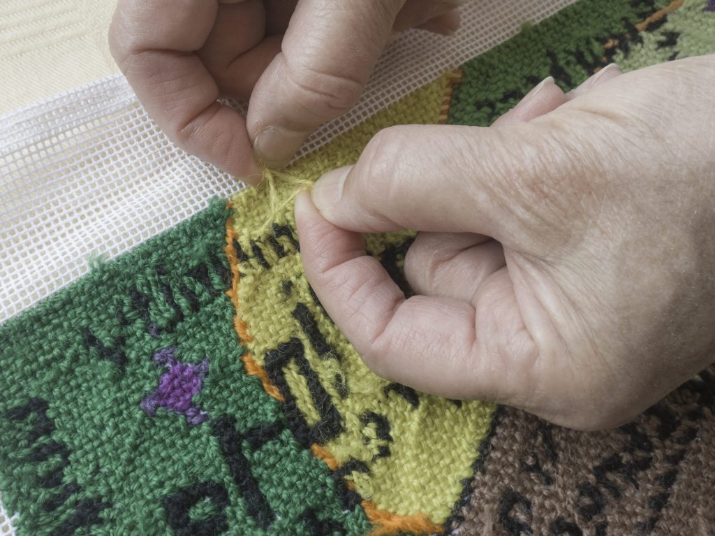 The thing about needlepoint is you do pull out as much as you put in, it’s amazing that you ever finish a project. If you make a mistake, you have to take it out. Sometimes, you’re lucky and you see that you made a mistake right away, sometimes you see the mistake two rows later.