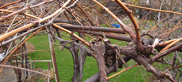 With each snip of the pruning shears, a branch of the grapevine falls from the pergola…