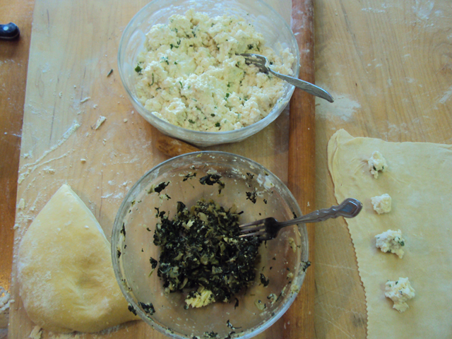The fillings: one is Swiss Chard with garlic, butter and salt.