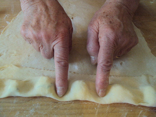 Cut out the ravioli first lengthwise then into squares.