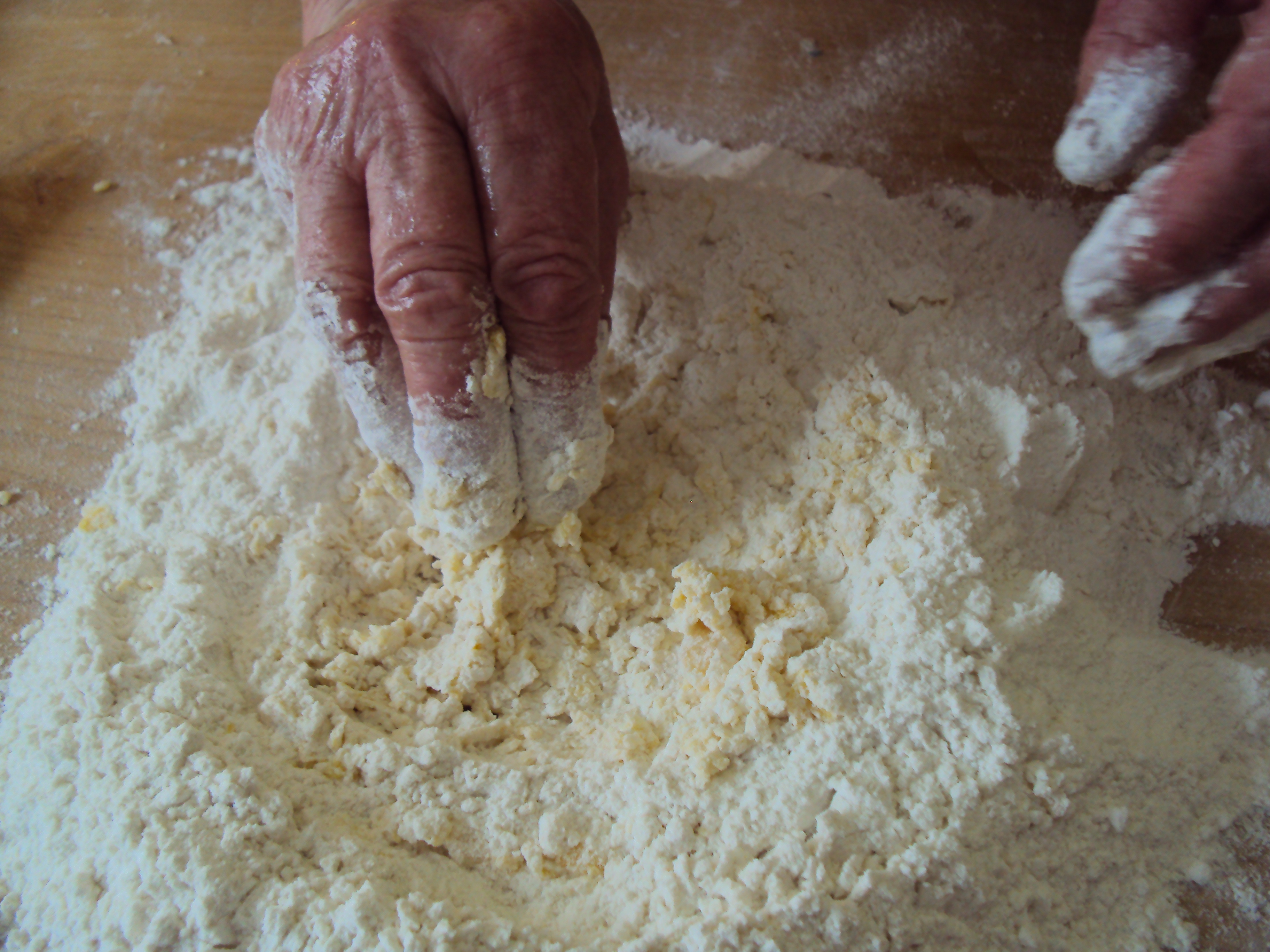 Eggs and flour make soft beautiful dough.
