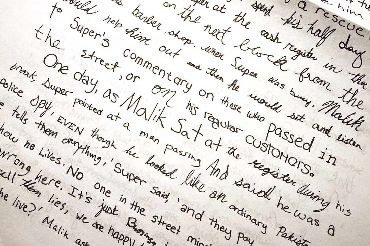 1334 Words for 1334 Students is a story, written by Colm Toibin, written out by the students, and printed on newsprint like a free paper in the subway. Each pupil in a Toronto school contributed one hand-written word to the whole. It is not a collective creation of story, but a collective effort in the presentation of the story – of the artifact. The personal mark of each child is discernible in the published piece. I wonder how significant it was for them, since for many the physical act of writing is a newly acquired skill. But the thing being presented is actually a story, and I wonder what the children thought of the story itself. I would have liked to eavesdrop on that discussion.