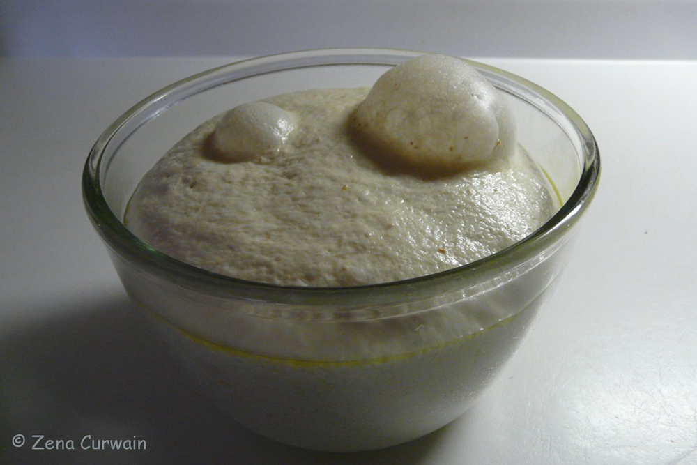 Dust hands with flour and turn and tuck dough into a ball. Place ball seam down onto a floured cotton tea towel that has been sprinkled with additional bran, sunflower seeds, or sesame if desired. Cover with towel and allow to rise for 2½ to 3 hours until doubled in bulk.